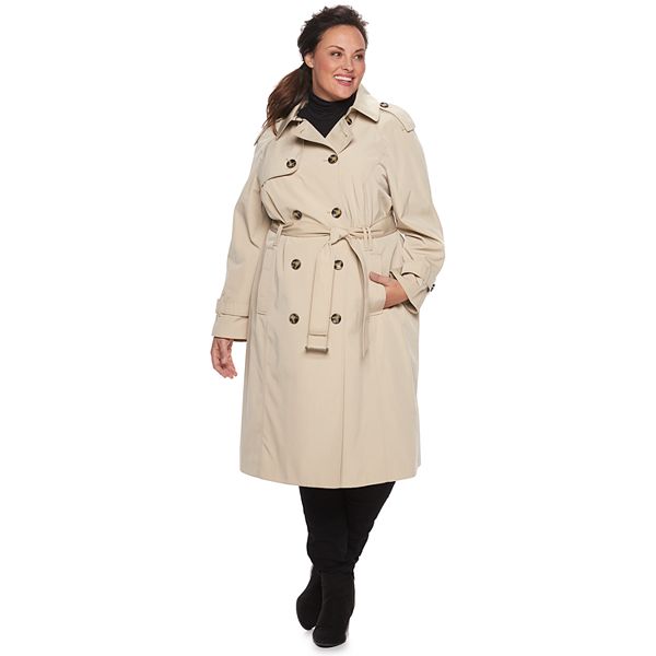 Plus Size Tower By London Fog Double Breasted Belted Trench Coat
